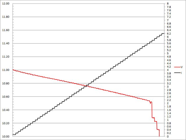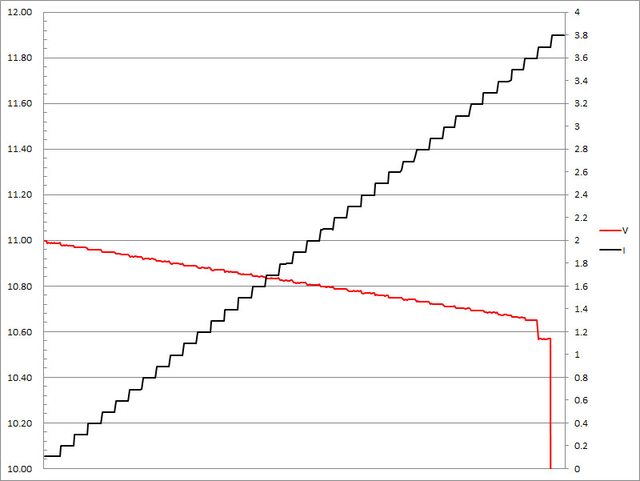 ▼USB-C2的第二組PPS檔11V輸出負載測試,隨著電流增加,輸出電壓下降,輸出電流超過