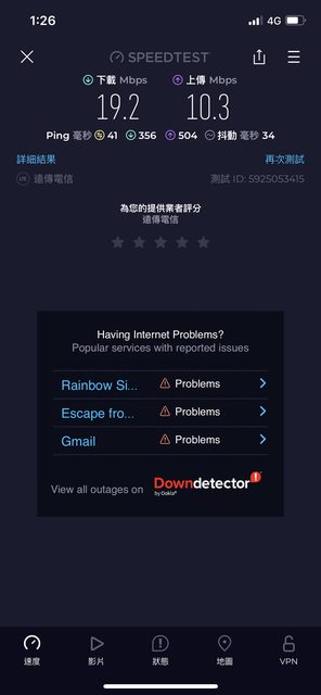 → ldickee : 大哥你手機顯示4G,測到是4G的速度吧 01/31 23:22