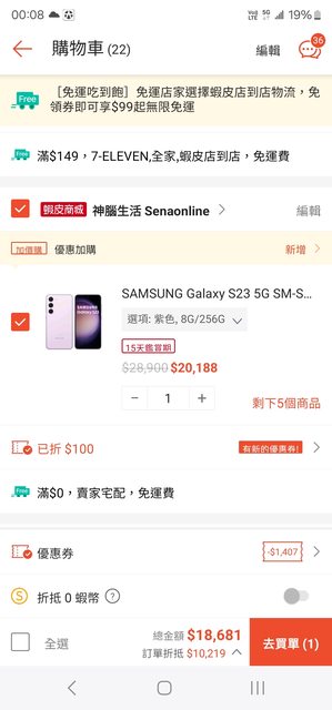 S24希望明天蝦皮商城會有更甜美的價格出來。XD