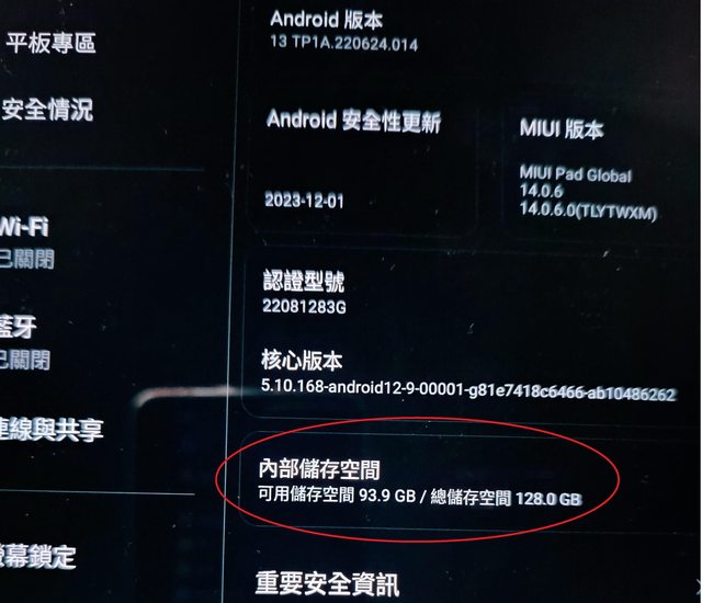 平板的內部儲存空間也出現異常