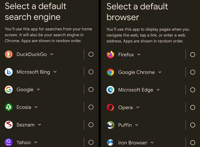 釋出的iOS 17.4一樣,Android上將列出使用者可選擇的各種搜尋引擎及瀏覽器,以方便