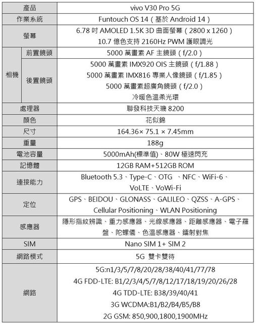 → howzming : V29: IP68. V30: IP54 vivo 不知在想甚麼. 03/14 13:10