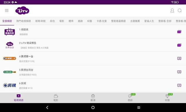 LiTV的頻道比我想像中還多,最基本的電影台、新聞台、綜藝台、體育台都有,還有很多劇可以看!