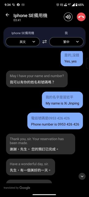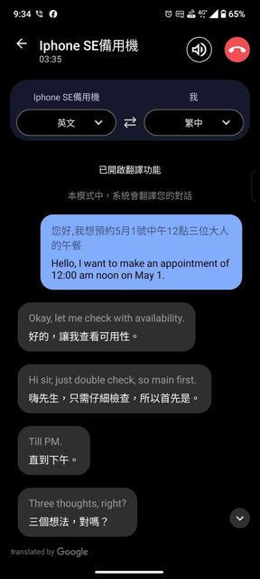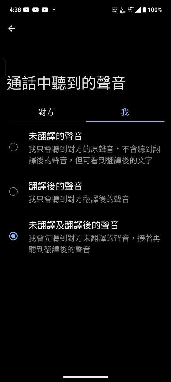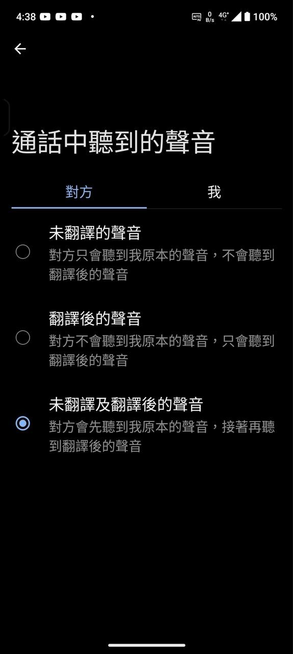 使用前會告知對方有使用通話翻譯功能,通話時你是聽不到對方原音的,當然對方也聽不