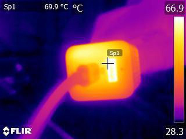 ▼USB-C輸出45W一小時後充電器本體的紅外線熱影像圖