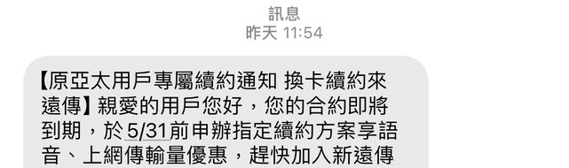 → sunnyda : 會寄續約簡訊給用戶?? 05/13 20:28
