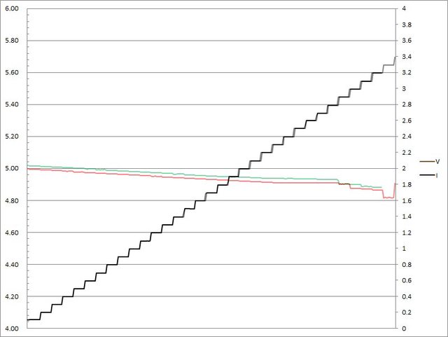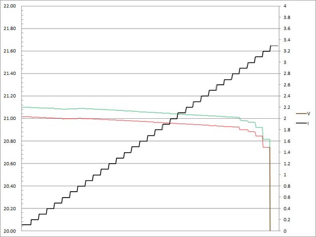 輸出電流超過3.2A大幅壓降,超過3.3A截止
