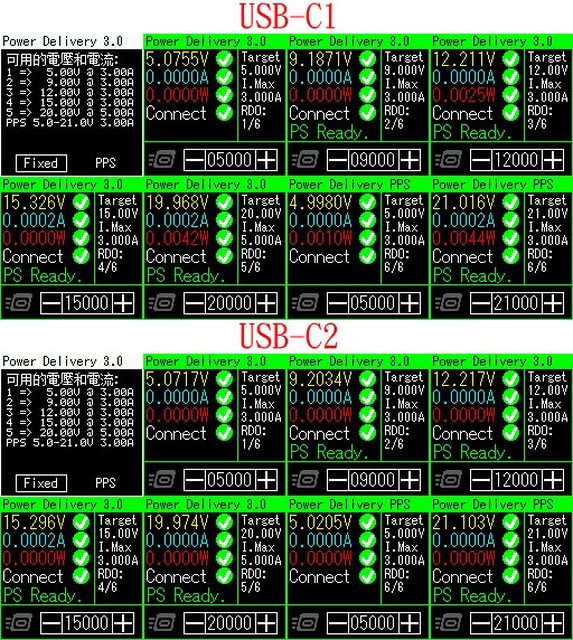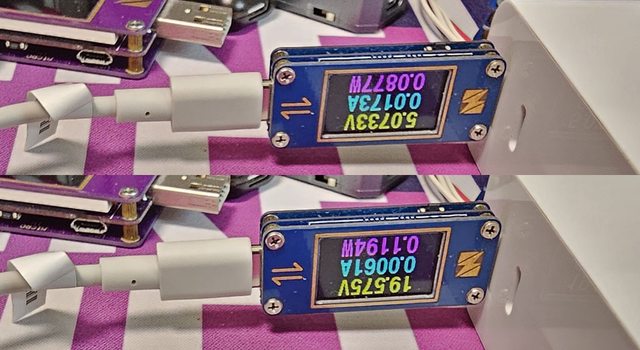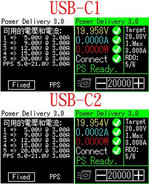 ◆C1/C2搭配Innergie USB-C to Tip Cable,插上時一開始會輸出5V,過幾秒後才會觸發