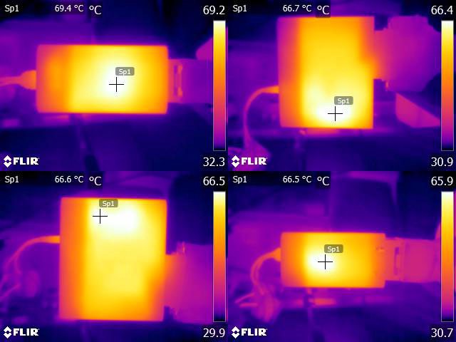 ▼單埠輸出100W一小時後充電器本體的紅外線熱影像圖