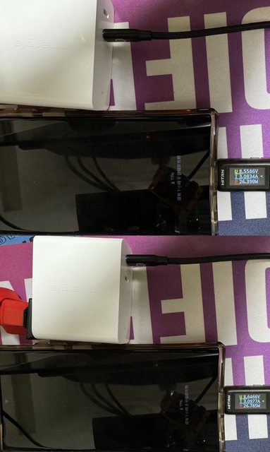 45W+45W或65W+30W,插上/拔除裝置或是充電器切換輸出配置時,會中斷輸出再重新供電