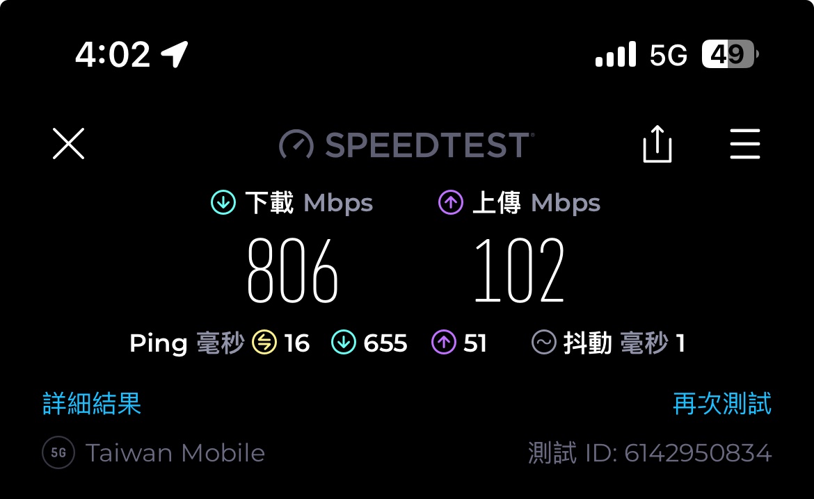 推 necoo : 台哥大5G也很慢,也想知道哪間的網路速度比較正常 06/12 17:14