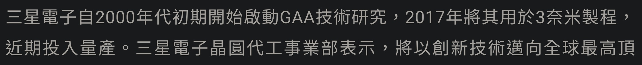 → manbow77 : 三星提早在3nm就用GAA了目的就是用GAA打FinFET 06/23 12:40
