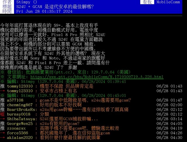 → Stimpy : 一個是 Reddit 上 S24U 的討論串, 06/28 07:41