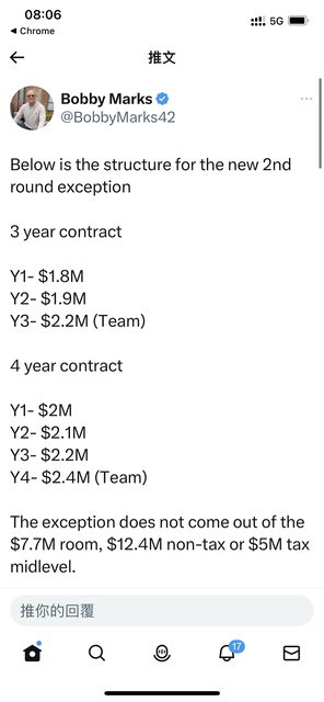 1. 持有2輪秀的球隊可以用2nd 特例簽下一份3-4年的特例合約