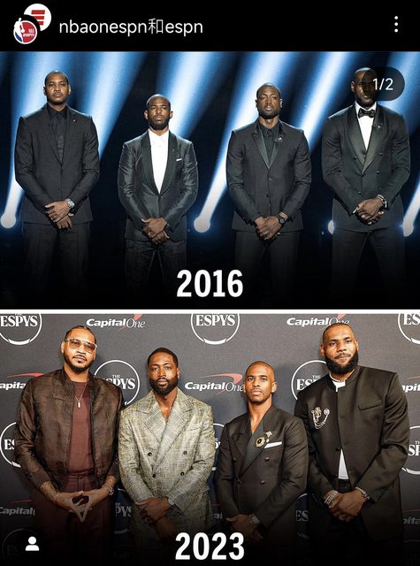 出處:espn instagram https://www.instagram.com/p/CunyL31uV1J/?igshid=MzRlODBiNWFlZA== Dwyane Wade Chris Paul Carmelo Anthony Lebron James 香蕉船兄弟出席年度卓越運動獎活動 比對一下2016和2023的穿著... 我瓜還是很帥r 拍照還要比光明會的手勢 有夠煞氣 我就問這四個同隊幾冠? -- ※ 發信站: 批踢踢實業坊(pttsite.org.tw), 來自: 211.23.84.211 (臺灣) ※ 文章網址: https://pttsite.org.tw/NBA/M.1689425185.A.3E7