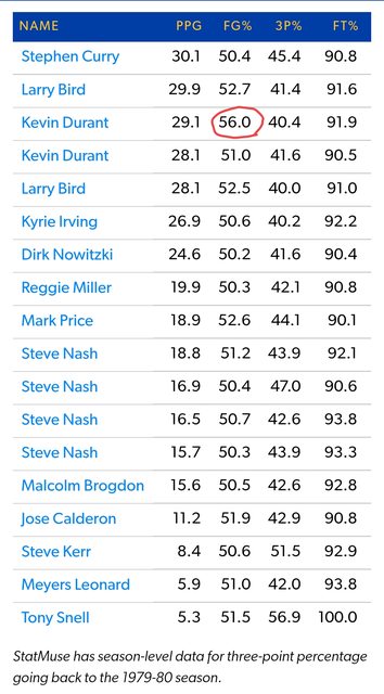 推 analytical : Curry的三分球命中率是史詩級別,但KD整個半場最不 09/30 22:27