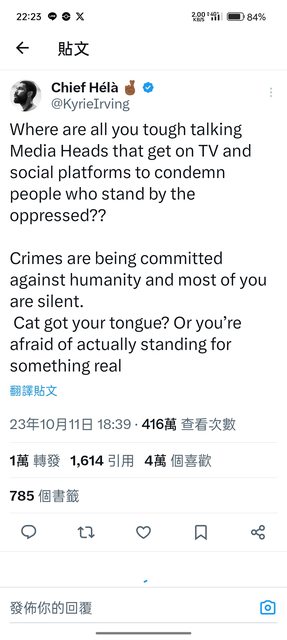 推 taylorking : 哈瑪斯恐攻音樂節時,他有出來發聲嗎? 10/13 23:20