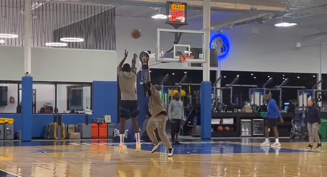 https://twitter.com/townbrad/status/1715795424055898460 It’s official: Mavs are prepping for the Spurs, specifically 7-4 rookie Victor Wembanyama, with God Shammgod playing the role of Wemby. “Wemby! Wemby ” he hollered while going out to defend Irving with his artificial Wemby length. 獨行俠隊即將在2023-23年球季開幕戰交手馬刺隊 其中為了讓球員們能夠習慣面對馬刺隊選秀狀元 Victor Wembanyama 因此安排助理教練 God Shammgod 在練球的時候裝上特製手臂 提前讓選手們在進攻時模擬Wembanyama對位防守的情況 https://i.imgur.com/OBoFtlI.jpg