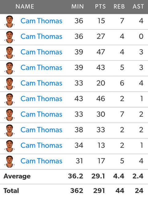 → Myosotis : 請問Cam Thomas這10場中 贏幾場和輸幾場? 11/04 19:29