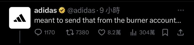 → hanslins : 原本愛迪達的回應很突兀,小帳號梗就很好笑 12/02 10:41