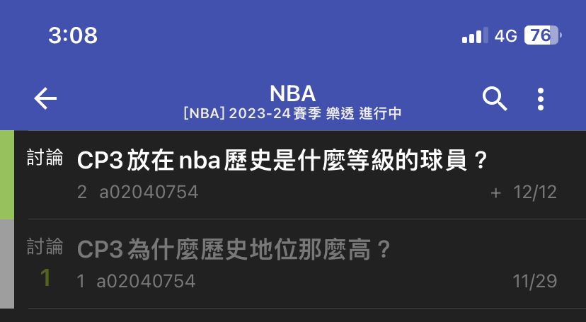 → STRO : 贏CP3。CP3多年一哥,老史幾乎老二 12/12 15:09