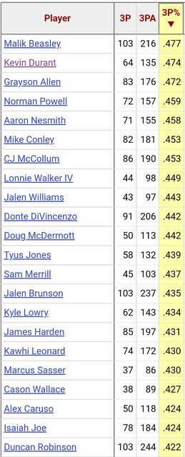 推 kunxue0320 : 可愛 Harden PG 砲 這4個三分全部都四成以上…… 01/10 10:11