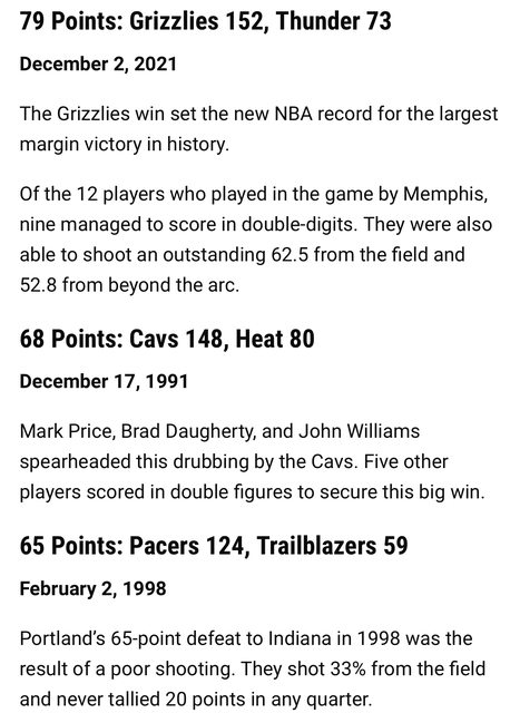史上最大分差是2021灰熊以79分的分差打爆雷霆