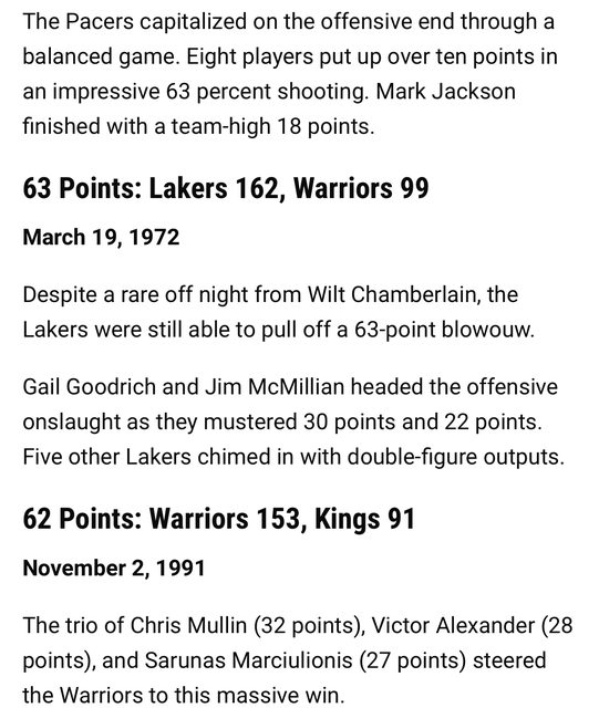 有人問62分是不是歷史最大分差比賽但很遺憾的是,62分只是第五名