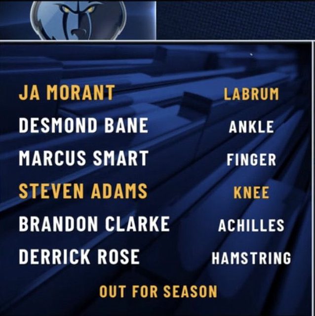 推 JahillOkafor: 灰熊這傷兵 真慘 01/16 10:01
