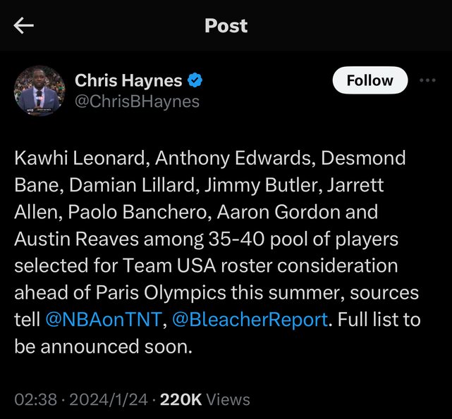 推 jason38152 : 沒有LeBron和AD喔? Dame打起來不強 AG應該會很猛 01/24 03:08
