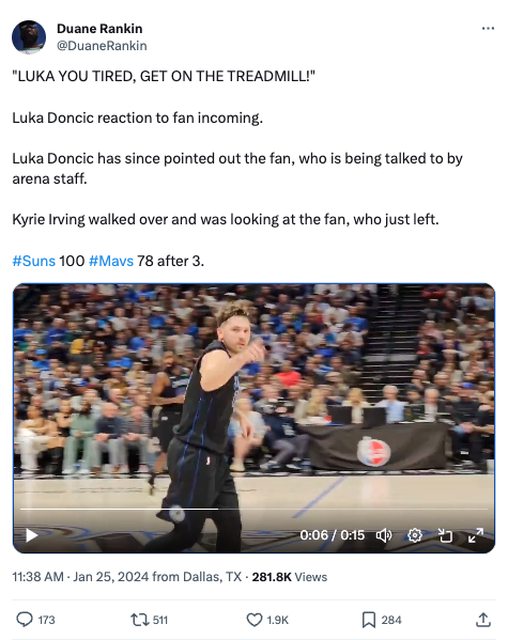 : The comment the fan made that drew Doncic’s wrath:“Luka, you’re tired!