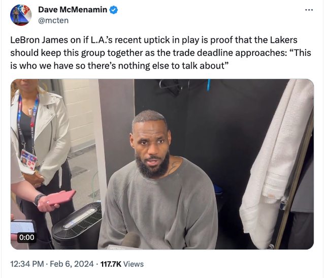 推 strmof22 : 每次姆斯說不會交易隊友的時候都很誠懇,每次都讓 02/06 18:16