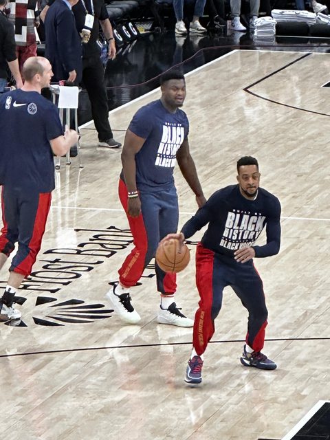 來就是要看怪物新秀文班亞馬!!以及一代傳奇老波波,現場看他真的很愜意,大部分戰術也是交給助教去安排