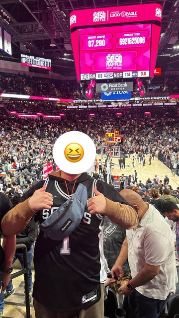 德州爸在中場的時候跟啦啦隊要到小獎品也就是馬刺的小護腕,他直接塞到我手裡然後說This gonna make your day!