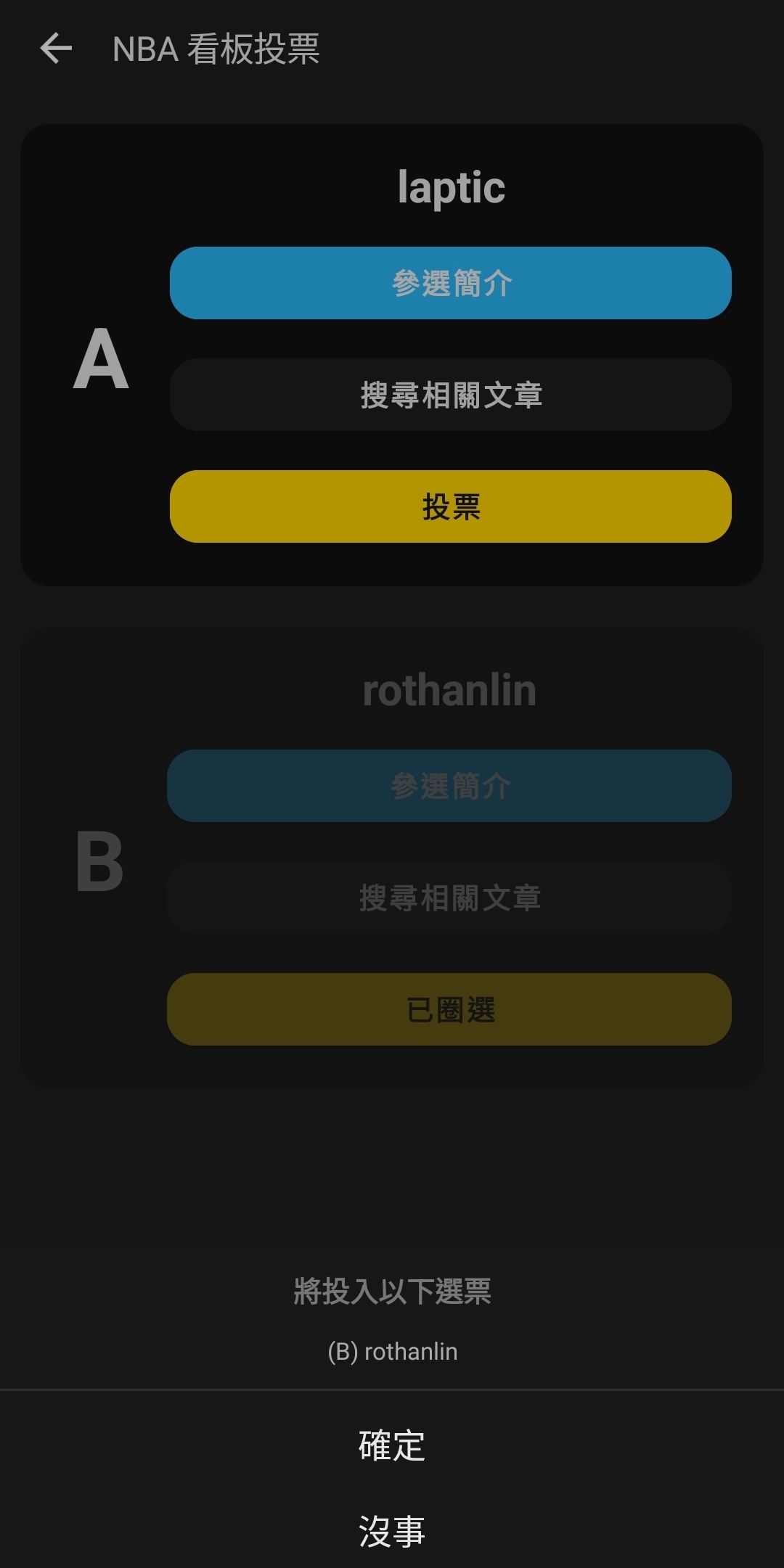 → rothanlin : 希望下次有個boby跟我搭檔參選,一起互相監督就好 02/21 13:49