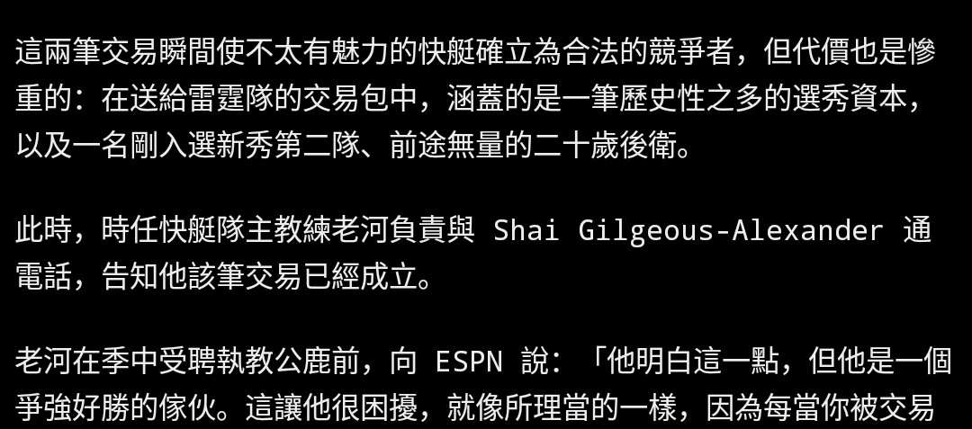 的球員。雖然可能要一、兩年,但我認為他低估了SGA 的能力。我沒有和他爭論該決定,
