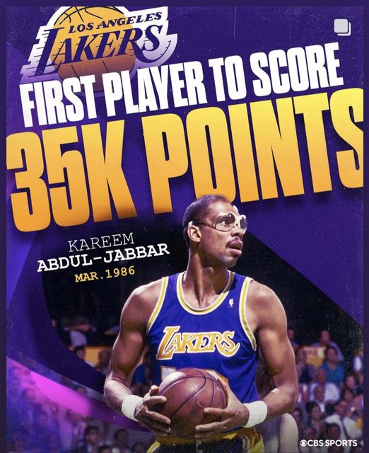 首位3.5萬分的球星也不難猜:湖人80年代當家中鋒Kareem Abdul-Jabbar(賈霸)