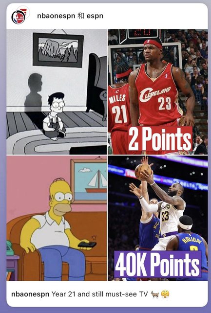 今天是LBJ生涯得分再創紀錄日,所以不少美媒的IG,不約而同陸續插播一些有趣的相關花