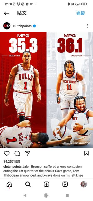 推 crawford438 : Brunson本季前30場,場均35.5分鐘左右,後30場增加 03/04 13:50