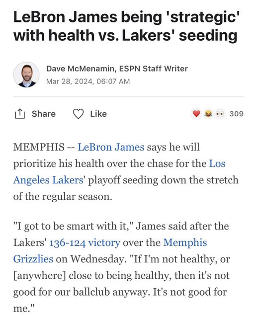 推 LBJ23 : 缺席 球隊勝率比較高 03/28 20:57