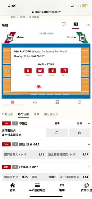 → jeff1013 : 國外那場不讓分熱火8.00 青賽1.09 04/21 18:45