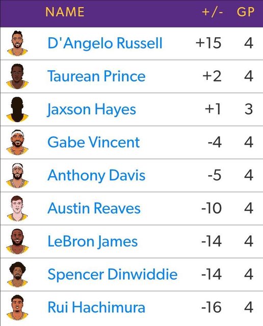 推 holyseraph : 湖人季後賽打四場總計 Dlo+15 姆斯-14 04/28 14:17