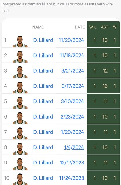 8. Damien Lillard公鹿時期超過10助攻的比賽(包括勝負)