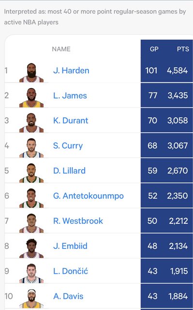 NBA players who has most 40 or more point regular-season games with 70% or highe