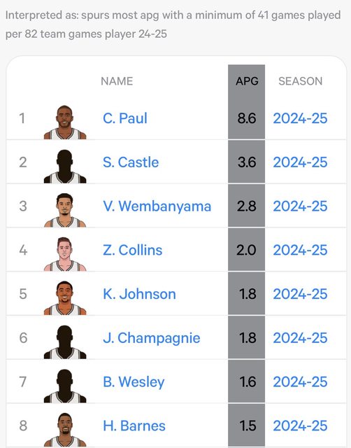 球隊稱冠數據:場均助攻(8.6次)與抄截數(SPG,1.4次)
