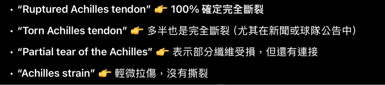 → beastlcc12 : 例如KD 那個是ruptured 才需要手術接 這是torn 06/24 01:34
