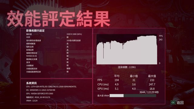 遊戲︰星際異攻隊 / 3060 + 1080P