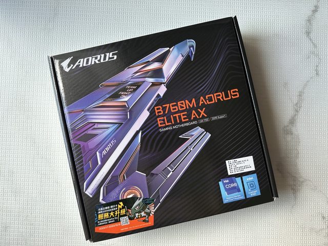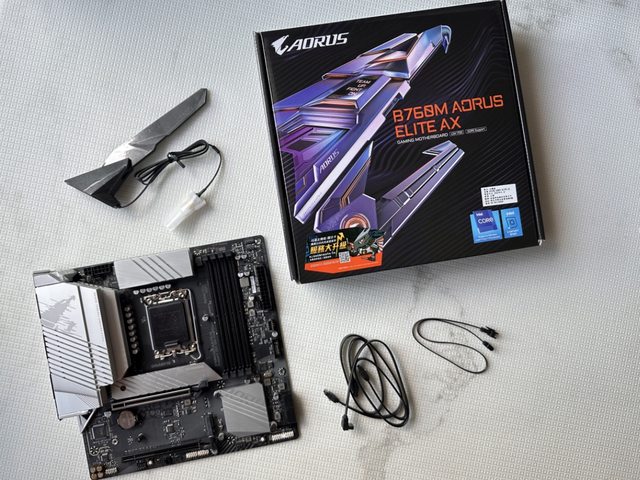 新入手配件也是本次主角之一的技嘉主機板:B760M AORUS ELITE AX。M-ATX規格主機板