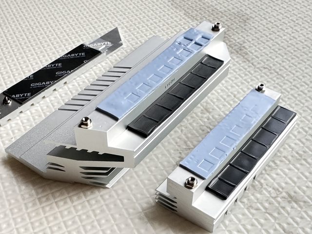 採用鋁擠金屬片散熱,上下側採用不同顏色的導熱墊,不曉得性能有無差異。