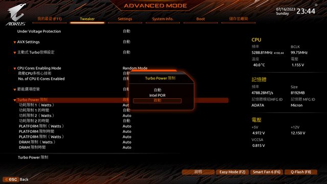 個人建議如果搭配高發熱的i7-13700K或i9-13900K,還是手動將PL1及PL2功耗設低一點。